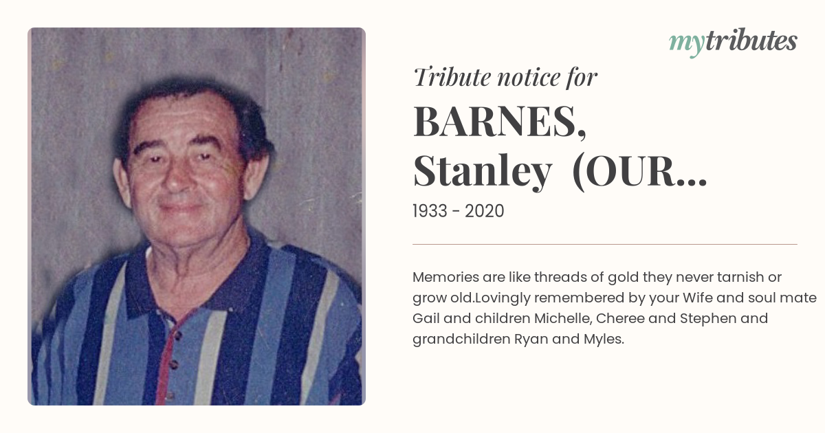 Lovingly remembered by your Wife and soul mate Gail and children Michelle, Cheree and Stephen and grandchildren Ryan and Myles.