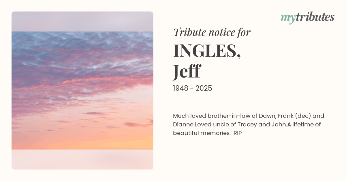 17°CMuch loved brother-in-law of Dawn, Frank (dec) and Dianne.