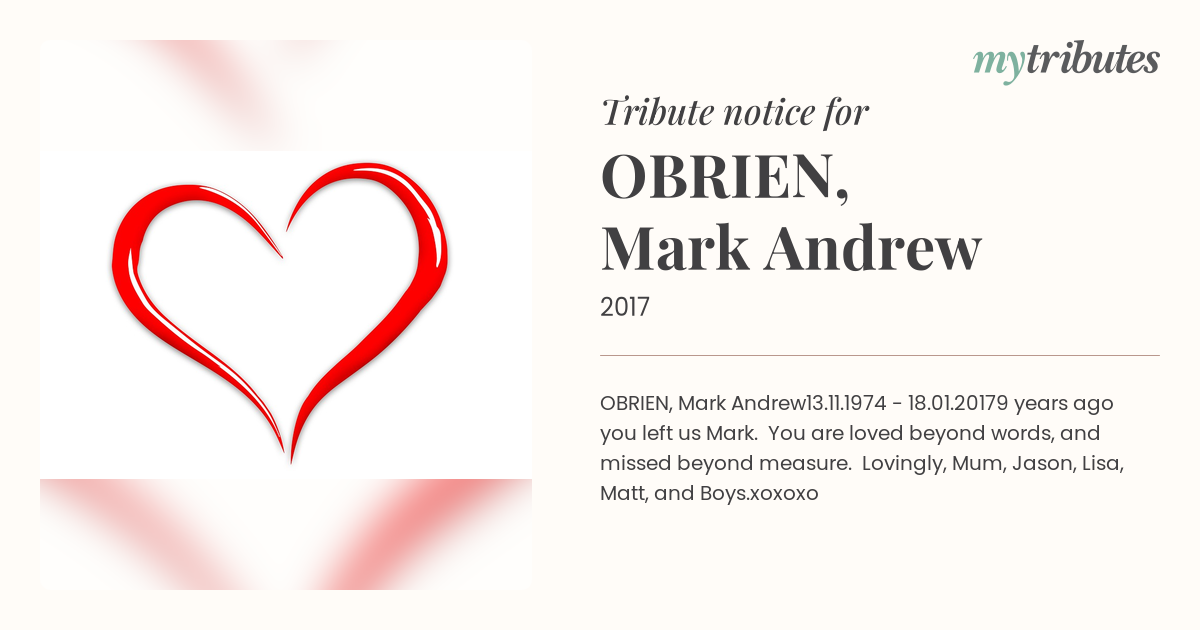 You are loved beyond words, and missed beyond measure. Lovingly, Mum, Jason, Lisa, Matt, and Boys.