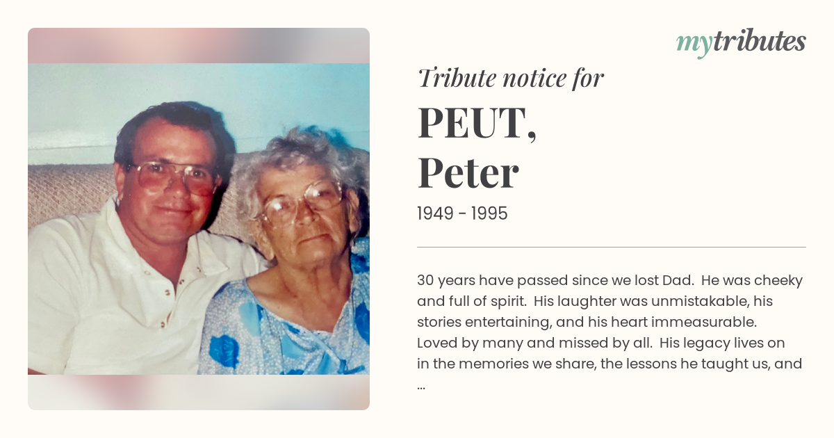 17°C30 years have passed since we lost Dad. He was cheeky and full of spirit. His laughter was unmistakable, his stories entertaining, and his heart immeasurable. Loved by many and missed by all. His legacy lives on in the memories we share, the lessons he taught us, and the joy he brought into our world. Miss you Dad, love Deb, Jody, Ben and families.