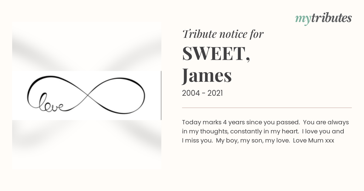 17°CToday marks 4 years since you passed. You are always in my thoughts, constantly in my heart. I love you and I miss you. My boy, my son, my love. Love Mum xxx