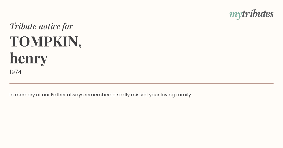 In memory of our Father always remembered sadly missed your loving family