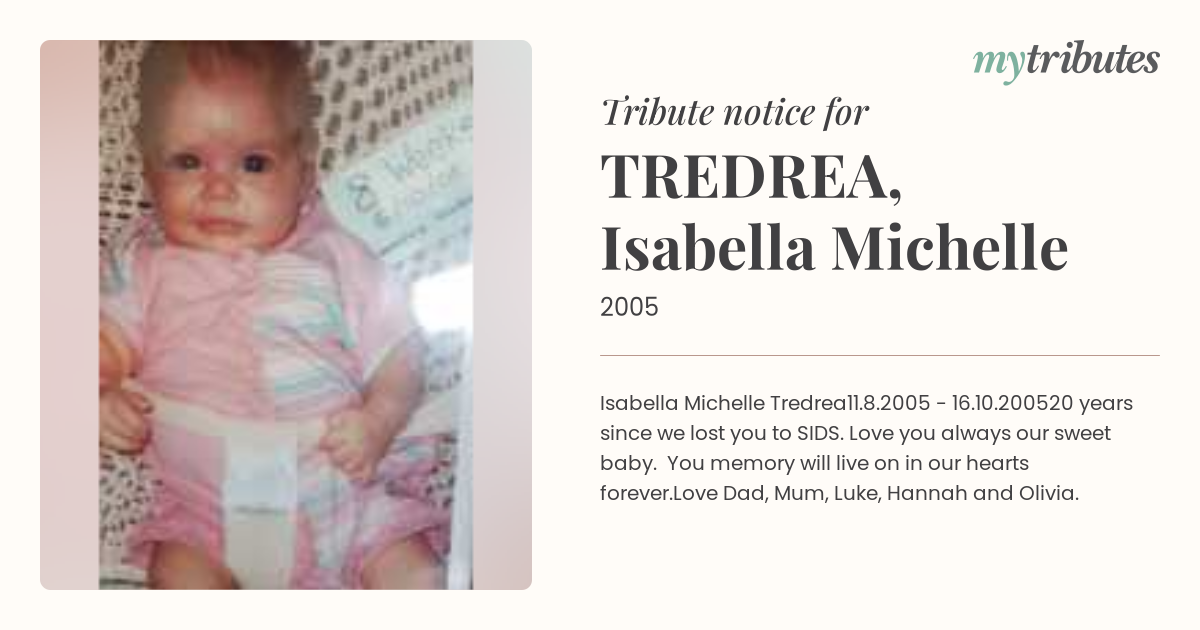 20 years since we lost you to SIDS. Love you always our sweet baby. You memory will live on in our hearts forever.