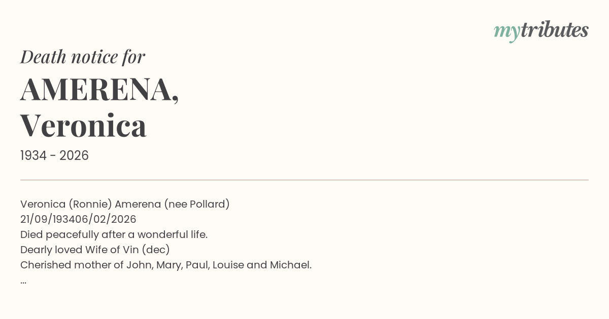 17°CVeronica (Ronnie) Amerena (nee Pollard)