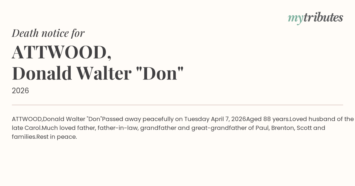 Passed away peacefully on Tuesday April 7, 2026