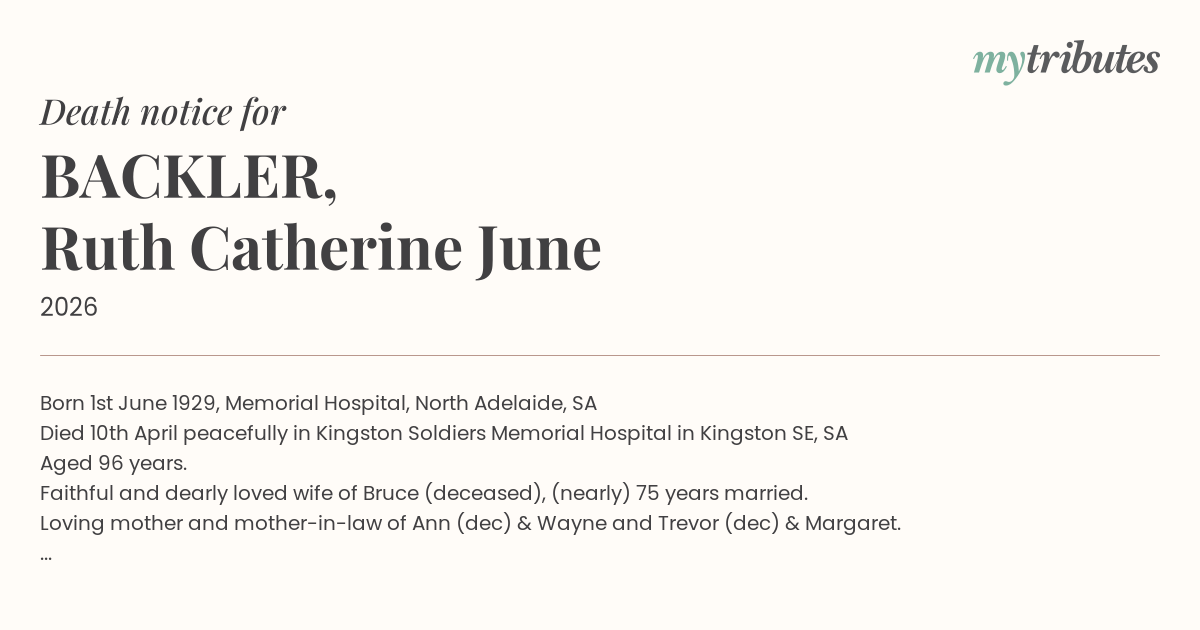 17°CBorn 1st June 1929, Memorial Hospital, North Adelaide, SA