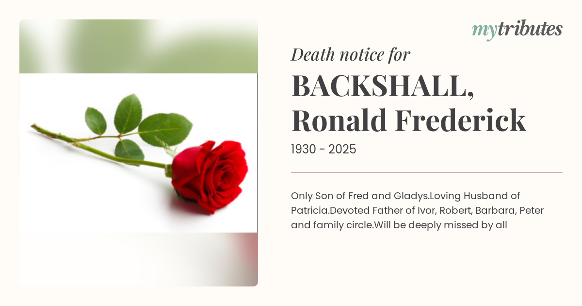 Devoted Father of Ivor, Robert, Barbara, Peter
