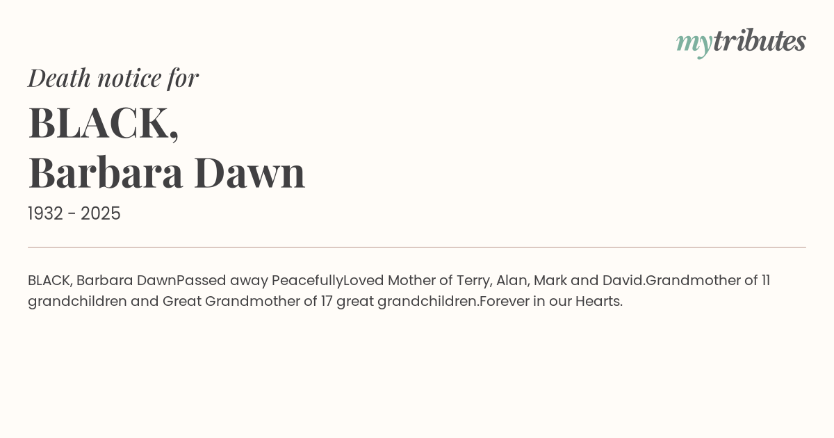 Grandmother of 11 grandchildren and Great Grandmother of 17 great grandchildren.