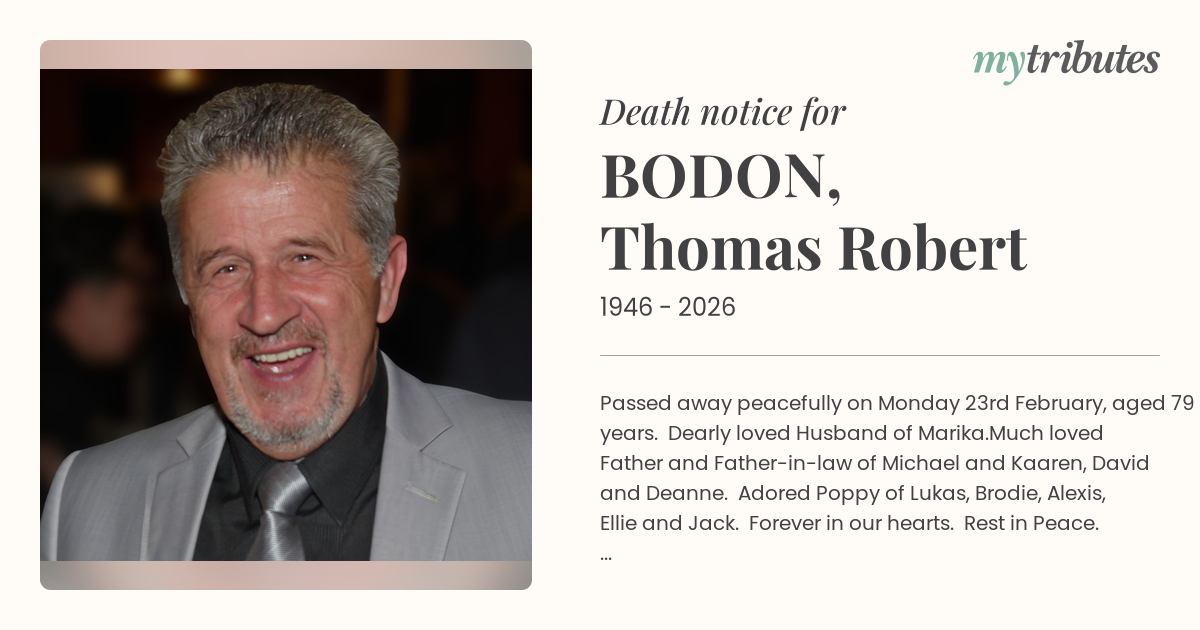 For funeral details, please visit https://www.gardeniafunerals.com.au/view-tribute/thomas-bodon-GF26053/