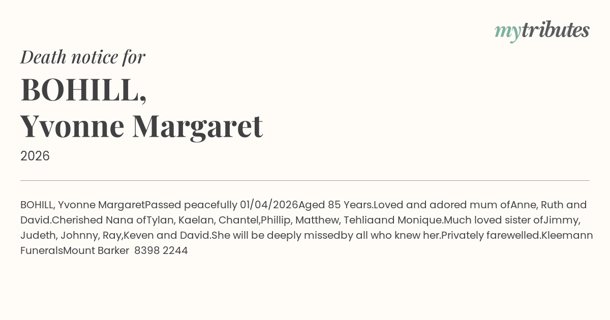 Passed peacefully 01/04/2026
