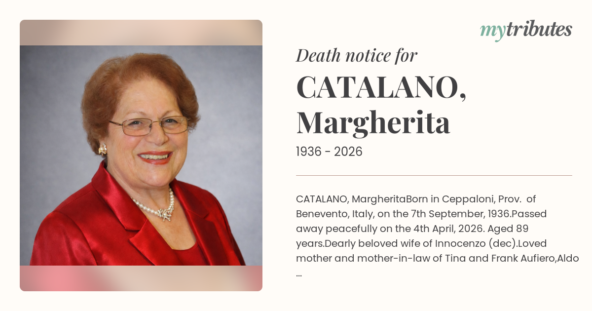Dearly loved daughter of Orazio and Pasqualina Parente (both dec).