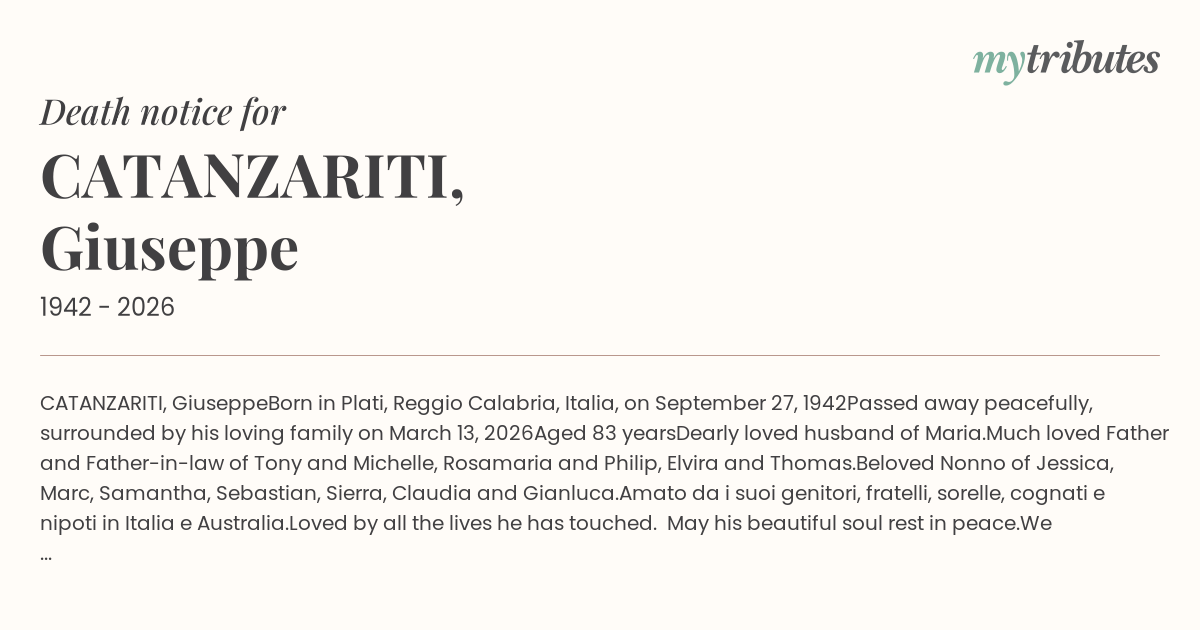 Born in Plati, Reggio Calabria, Italia, on September 27, 1942