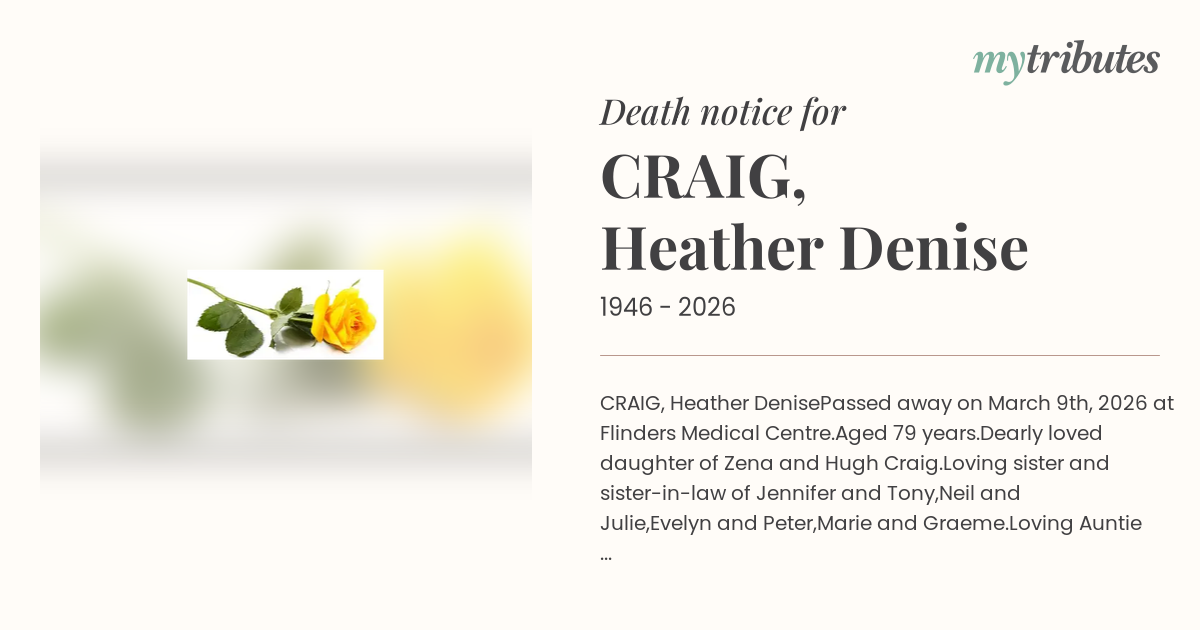 Passed away on March 9th, 2026 at Flinders Medical Centre.