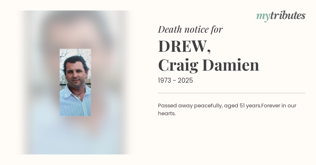 Passed away peacefully, aged 51 years.Forever in our hearts.