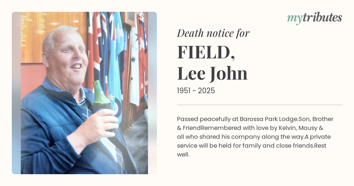 Remembered with love by Kelvin, Mousy & all who shared his company along the way.