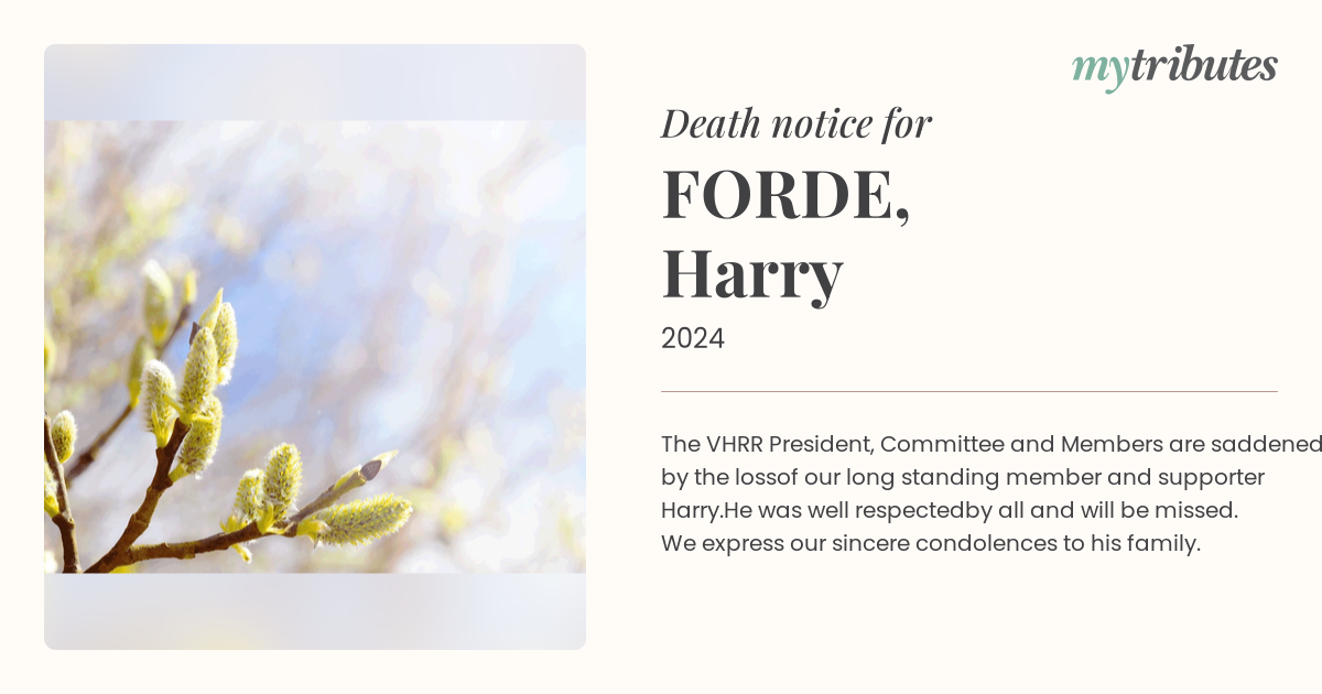 17°CThe VHRR President, Committee and Members are saddened by the loss