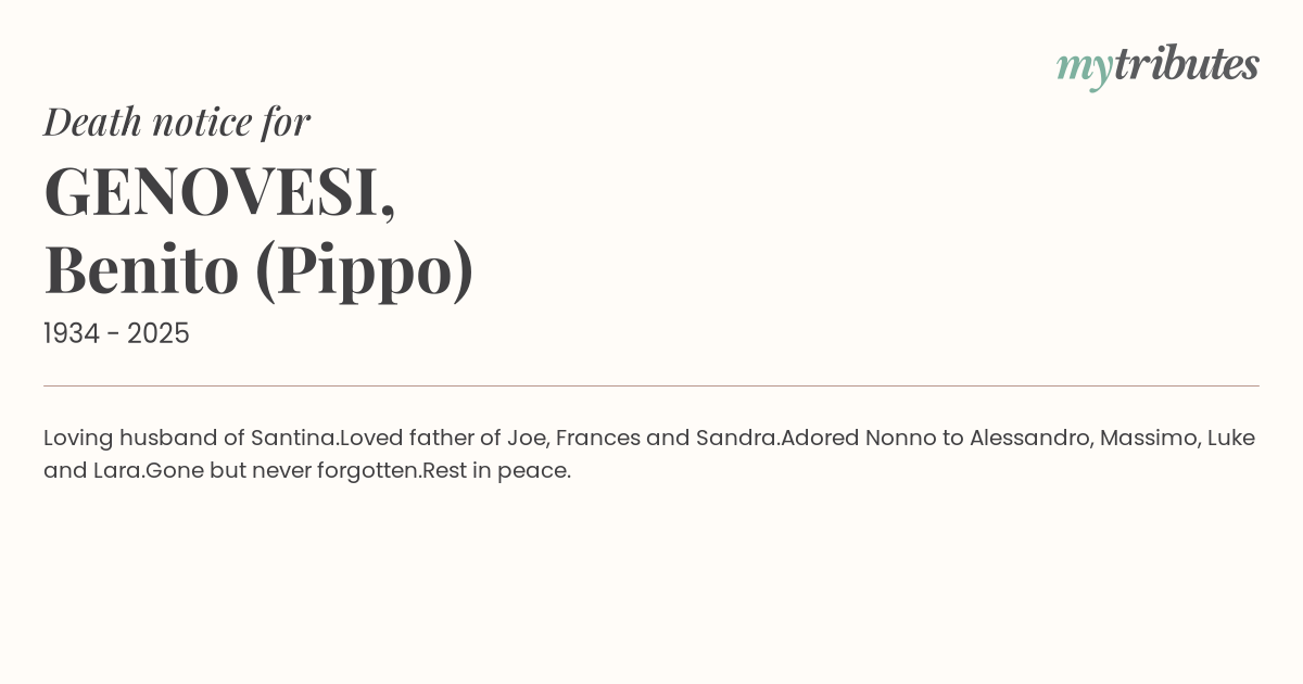 Adored Nonno to Alessandro, Massimo, Luke and Lara.