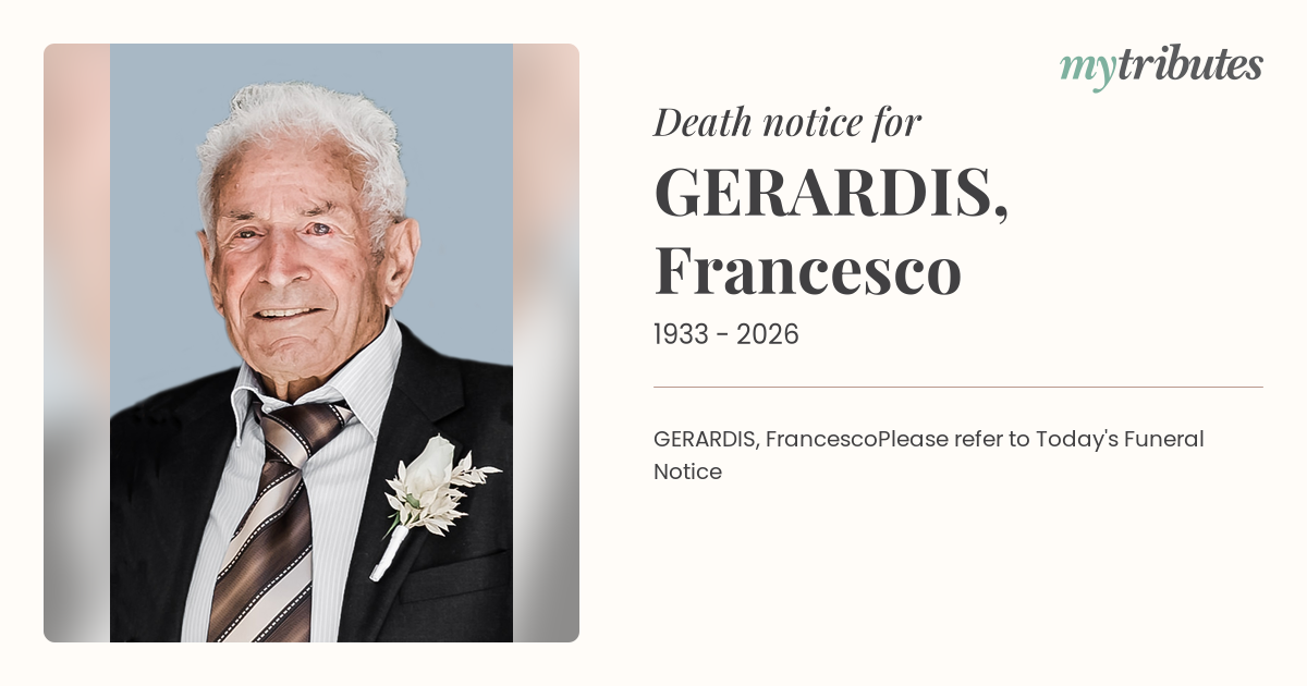 GERARDIS, FrancescoPlease refer to Today's Funeral Notice