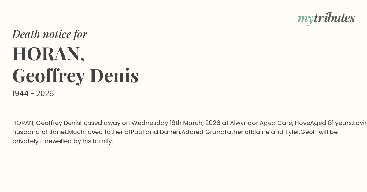 Passed away on Wednesday 18th March, 2026 at Alwyndor Aged Care, Hove