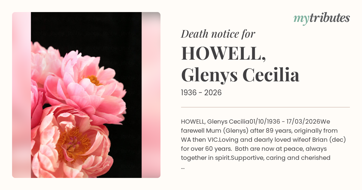 We farewell Mum (Glenys) after 89 years, originally from WA then VIC.