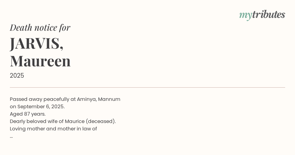 17°CPassed away peacefully at Aminya, Mannum