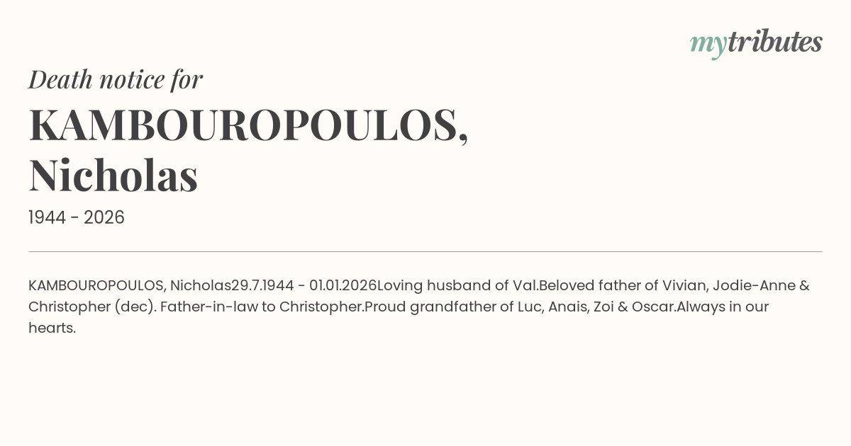 Beloved father of Vivian, Jodie-Anne &