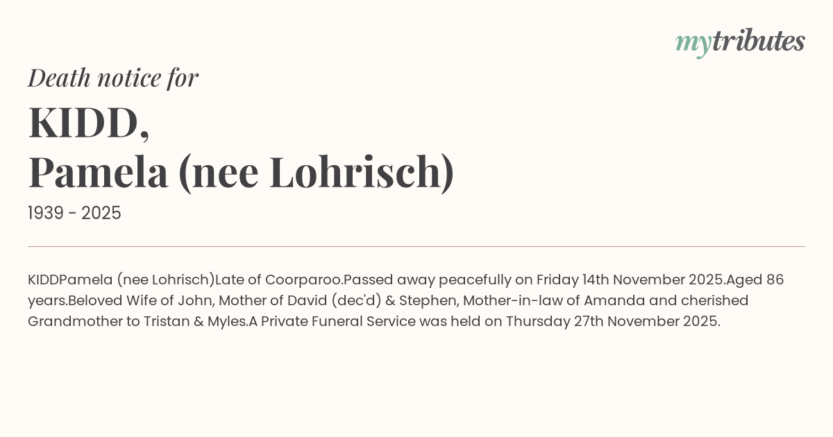 A Private Funeral Service was held on Thursday 27th November 2025.