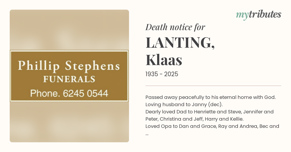 Dearly loved Dad to Henriette and Steve, Jennifer and Peter, Christina and Jeff, Harry and Kellie.