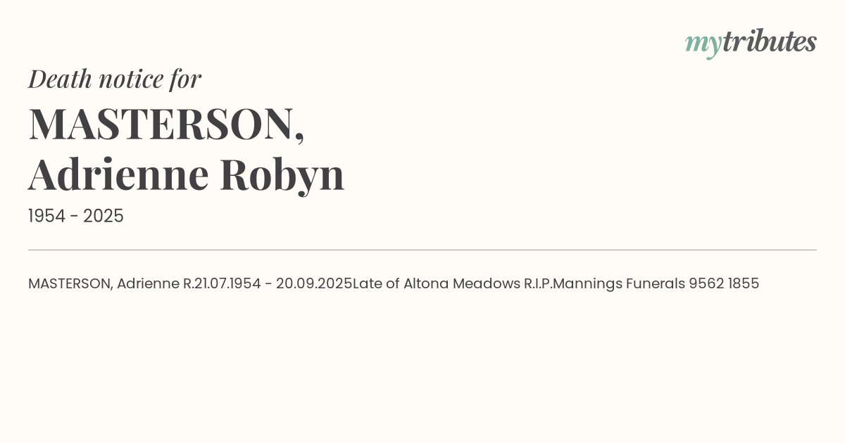 Late of Altona Meadows R.I.P.