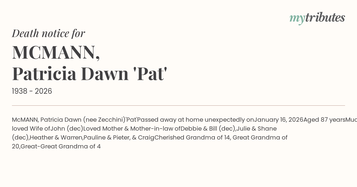 17°CMcMANN, Patricia Dawn (nee Zecchini)