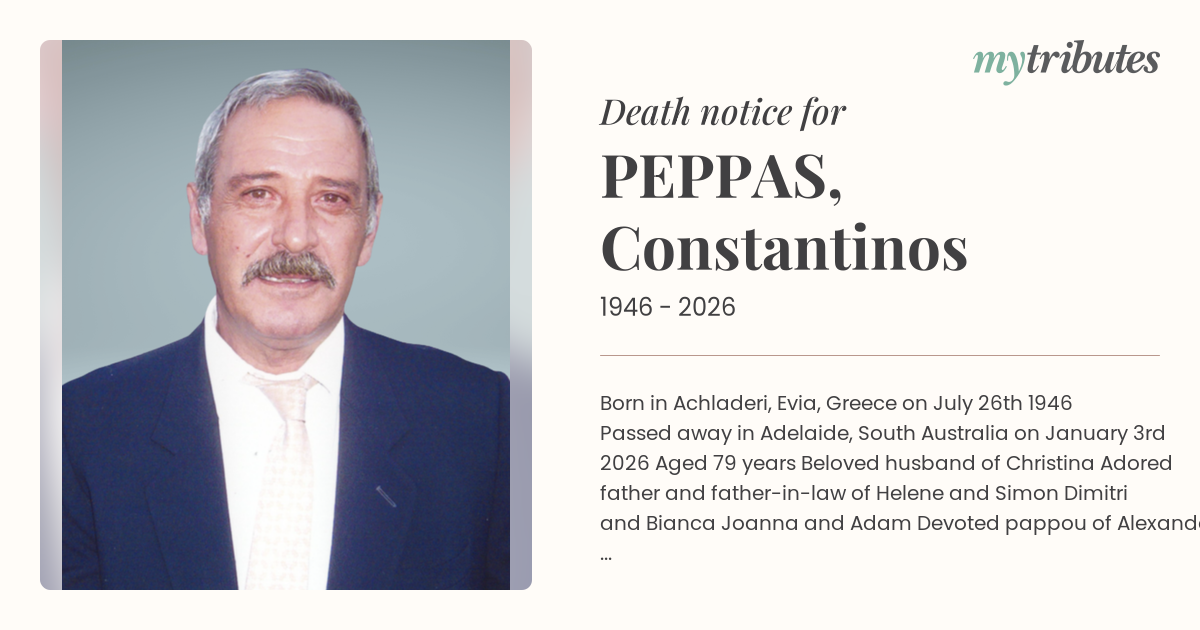 Devoted pappou of Alexander, Sebastian, Kristina, Kosta, Matteo, Zachary and Ava