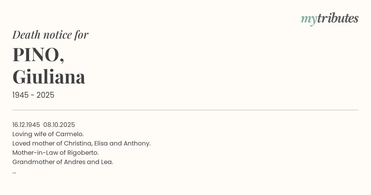 Aunty of Paola, Michaela, Mauro, Katie-Jane, Max and Luke.
