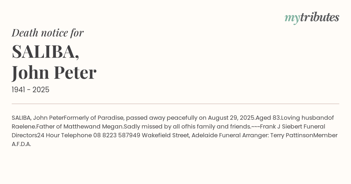 Funeral by : Frank J Siebert Funeral Directors