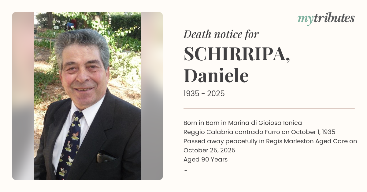 Respected brother of Teresa, Rosina, Francesco, Bettina, Melina, Cosimo, Rocco, Salvatore and Giuseppe (all deceased)