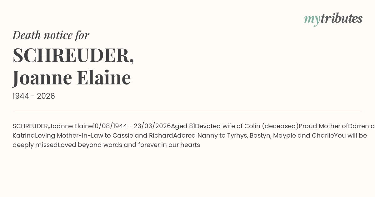 Devoted wife of Colin (deceased)