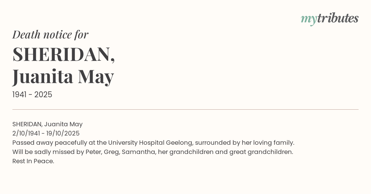 Passed away peacefully at the University Hospital Geelong, surrounded by her loving family.