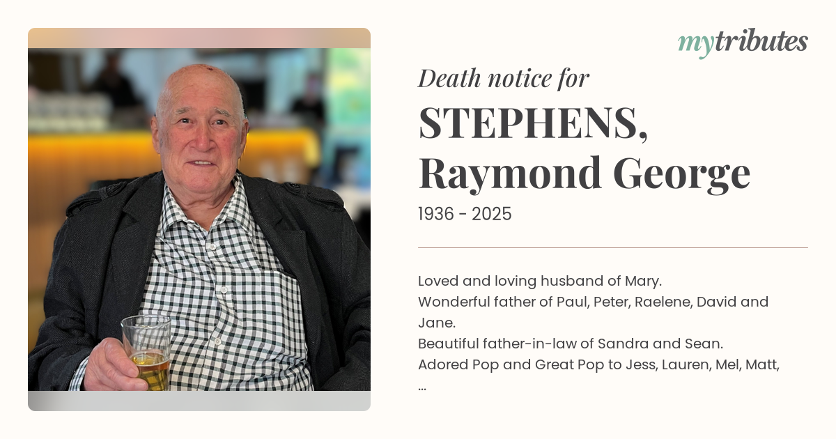Wonderful father of Paul, Peter, Raelene, David and Jane.