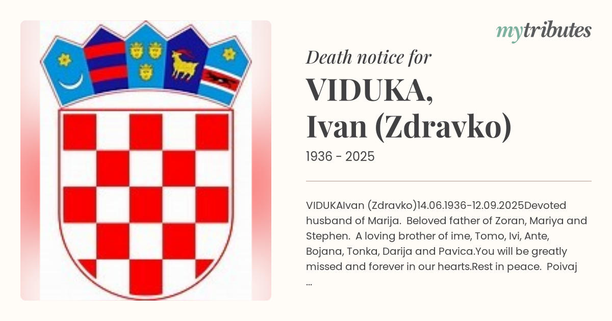 Devoted husband of Marija. Beloved father of Zoran, Mariya and Stephen.