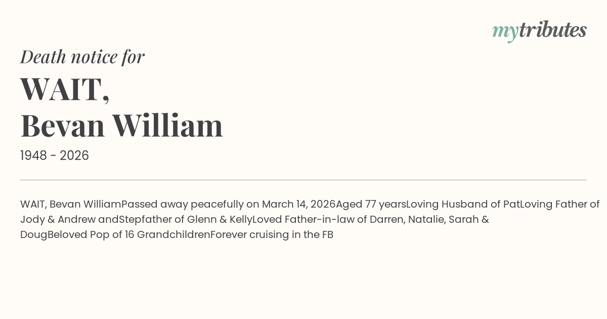 17°CWAIT, Bevan William