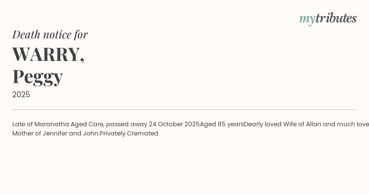 17°CLate of Maranatha Aged Care, passed away 24 October 2025