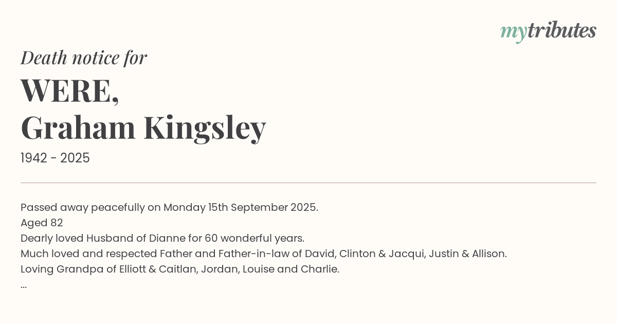 17°CPassed away peacefully on Monday 15th September 2025.