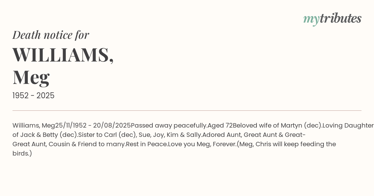 17°CWilliams, Meg