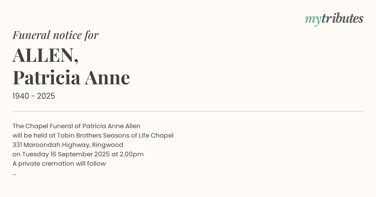17°CThe Chapel Funeral of Patricia Anne Allen