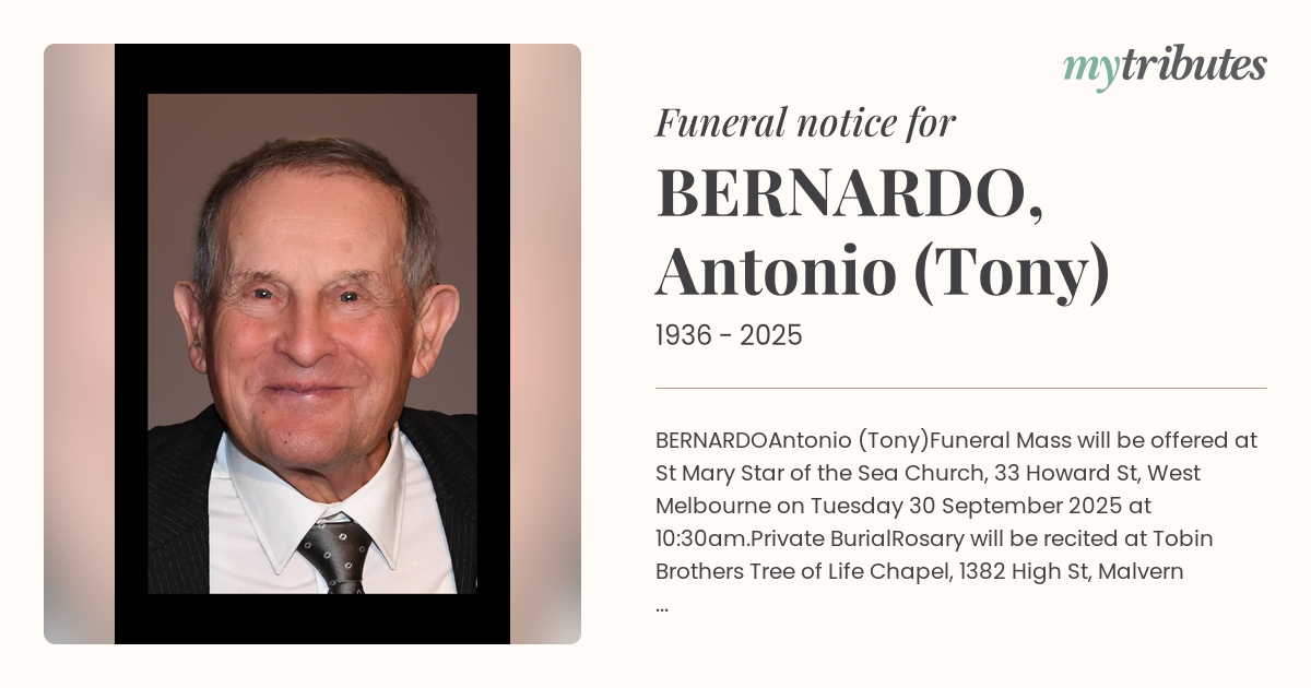 Funeral Mass will be offered at St Mary Star of the Sea Church, 33 Howard St, West Melbourne on Tuesday 30 September 2025 at 10:30am.