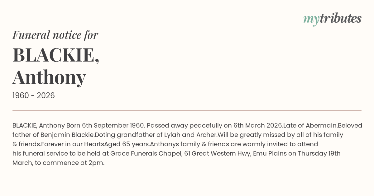 Anthony’s family & friends are warmly invited to attend his funeral service to be held at
