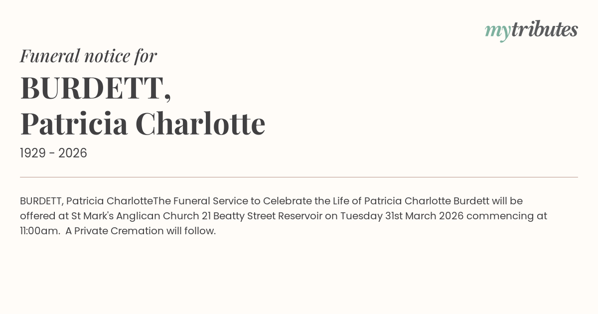 The Funeral Service to Celebrate the Life of Patricia Charlotte