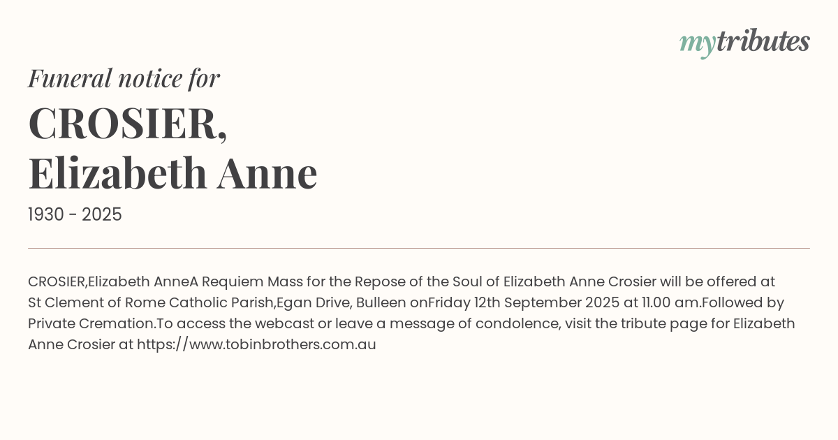 A Requiem Mass for the Repose of the Soul of Elizabeth Anne Crosier