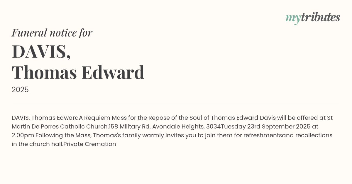 Soul of Thomas Edward Davis will be offered at