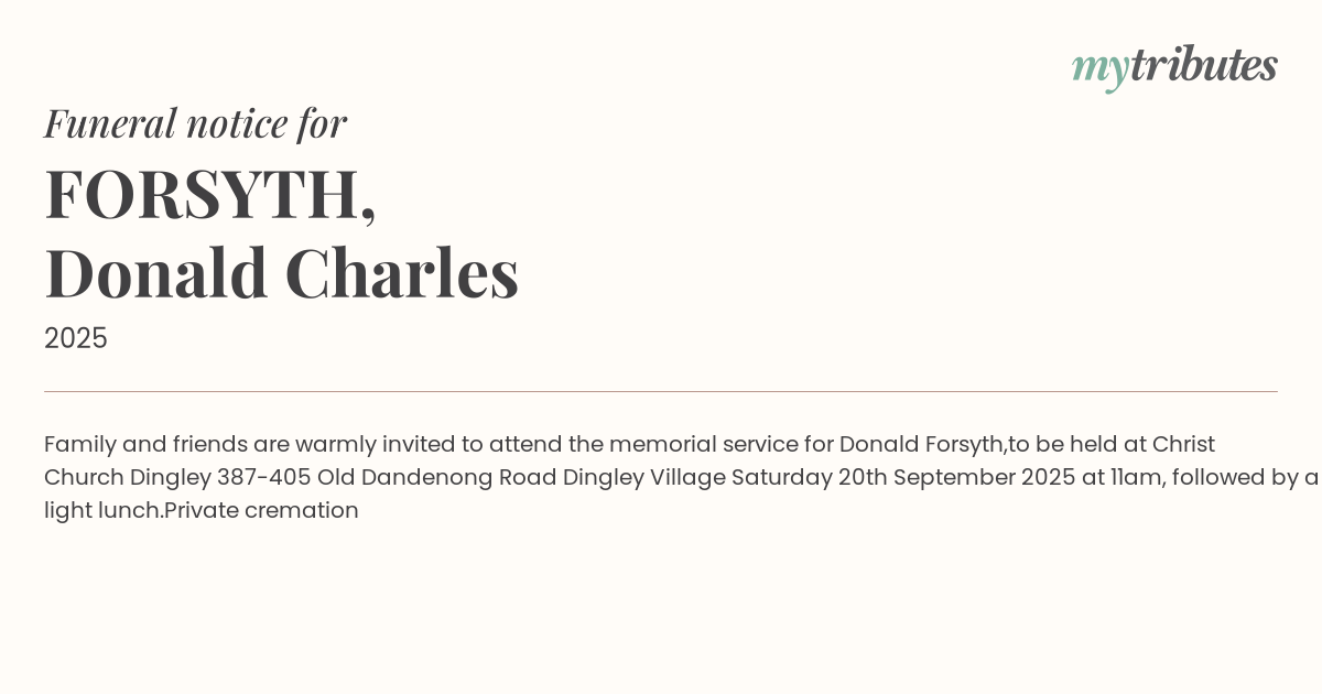 17°CFamily and friends are warmly invited to attend the memorial service for Donald Forsyth,