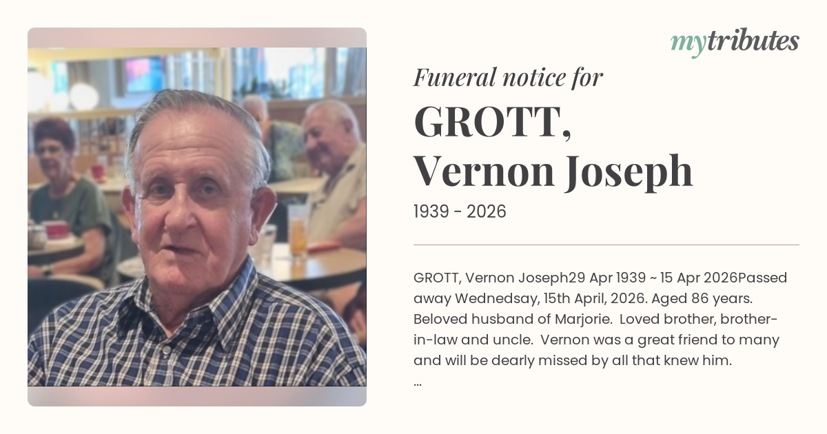 Passed away Wednedsay, 15th April, 2026. Aged 86 years. Beloved husband of Marjorie. Loved brother, brother-in-law and uncle. Vernon was a great friend to many and will be dearly missed by all that knew him.
